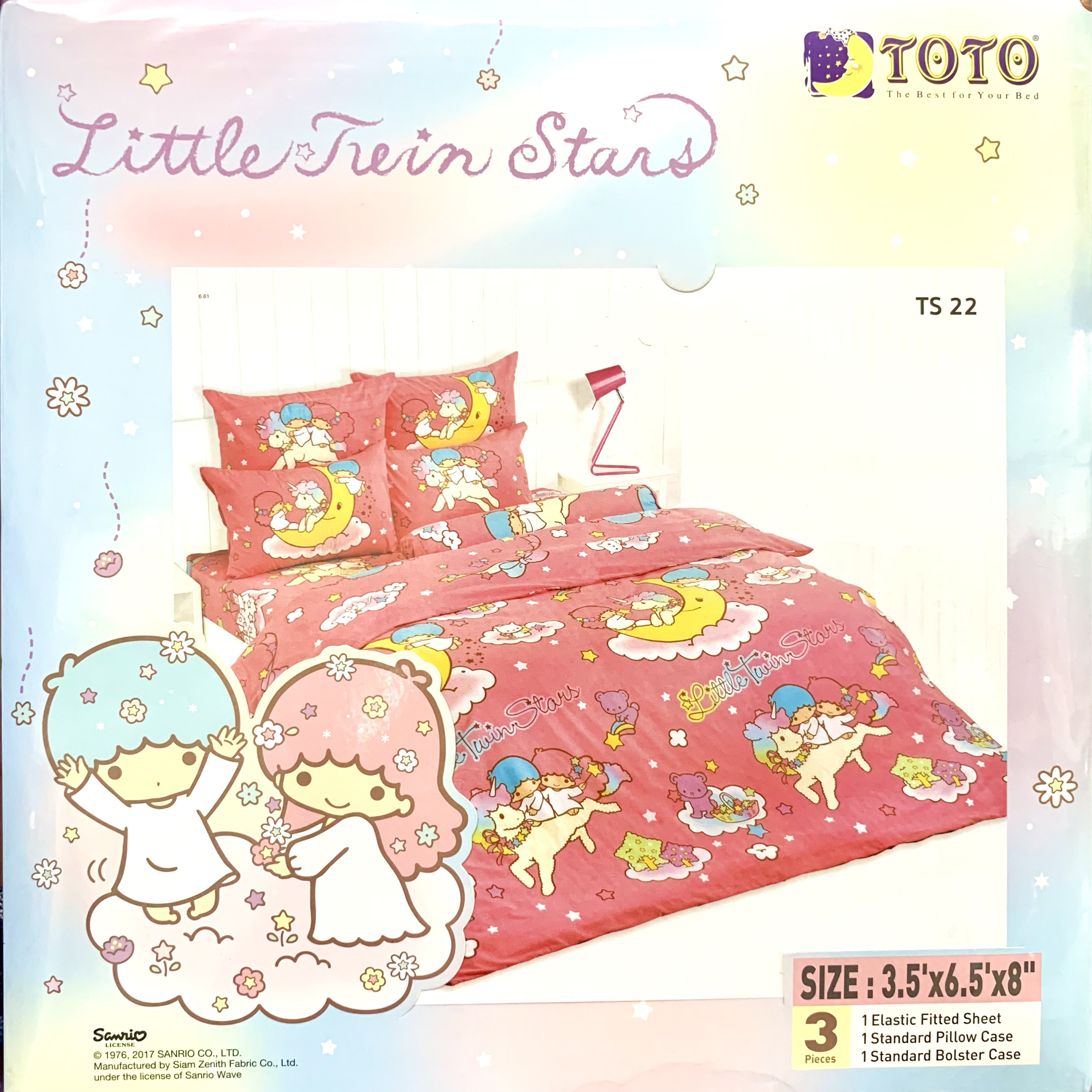 ประกอบด้วย: ผ้าปูที่นอนขนาดเตียงเดี่ยว 3.5’ x 6.5’ x 8-10” บรรจุ 1ชิ้น, ปลอกหมอนหนุน บรรจุ 1 ชิ้น, ปลอกหมอนข้าง บรรจุ 1 ชิ้น